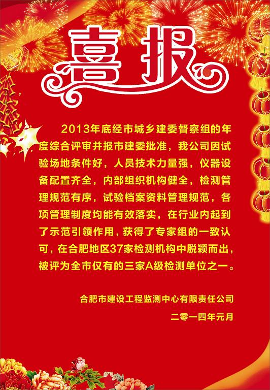 新聞來源: 合肥市建設(shè)工程監(jiān)測中心有限責(zé)任公司 瀏覽次數(shù):1594時間:2014-01-20